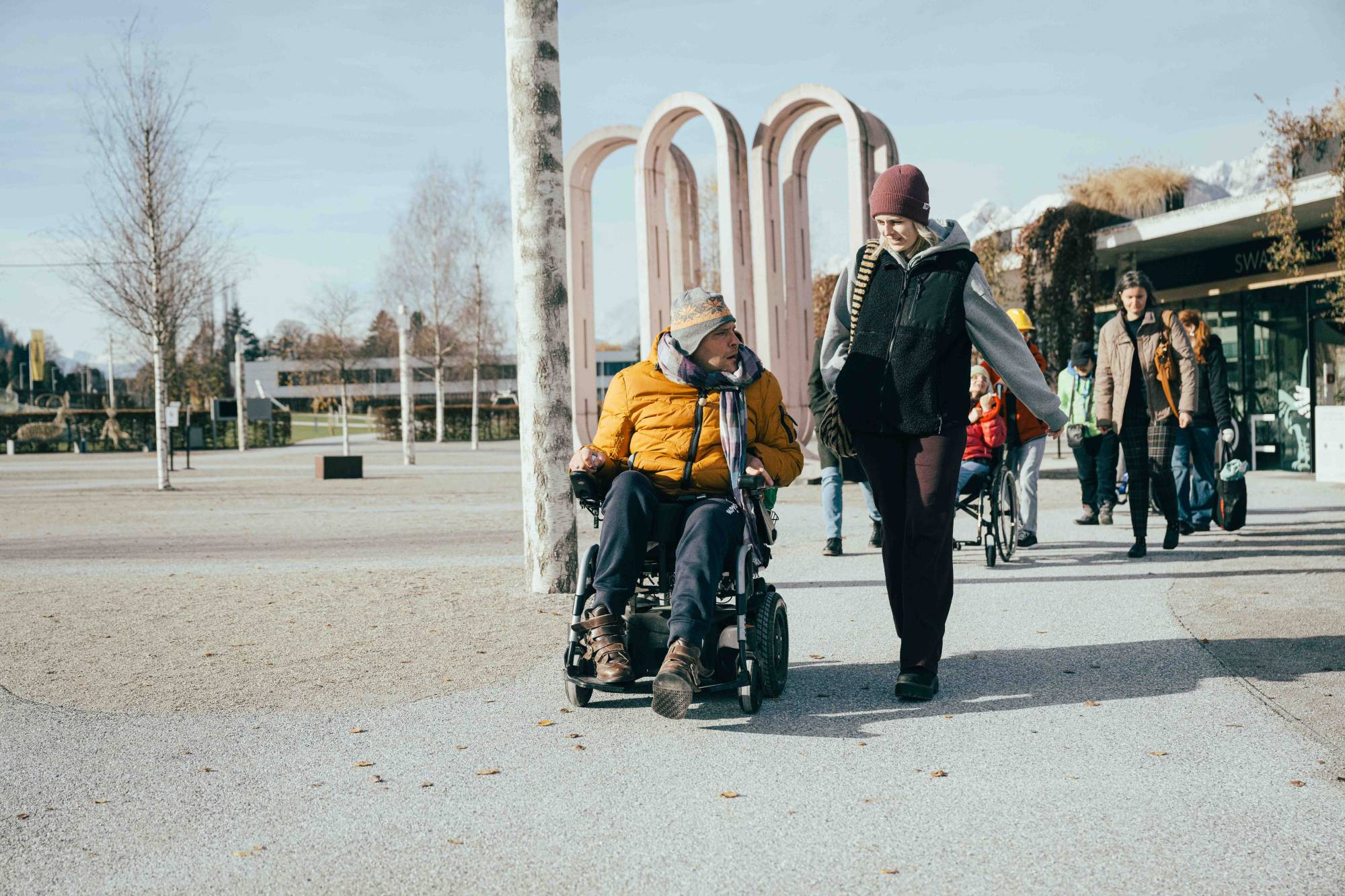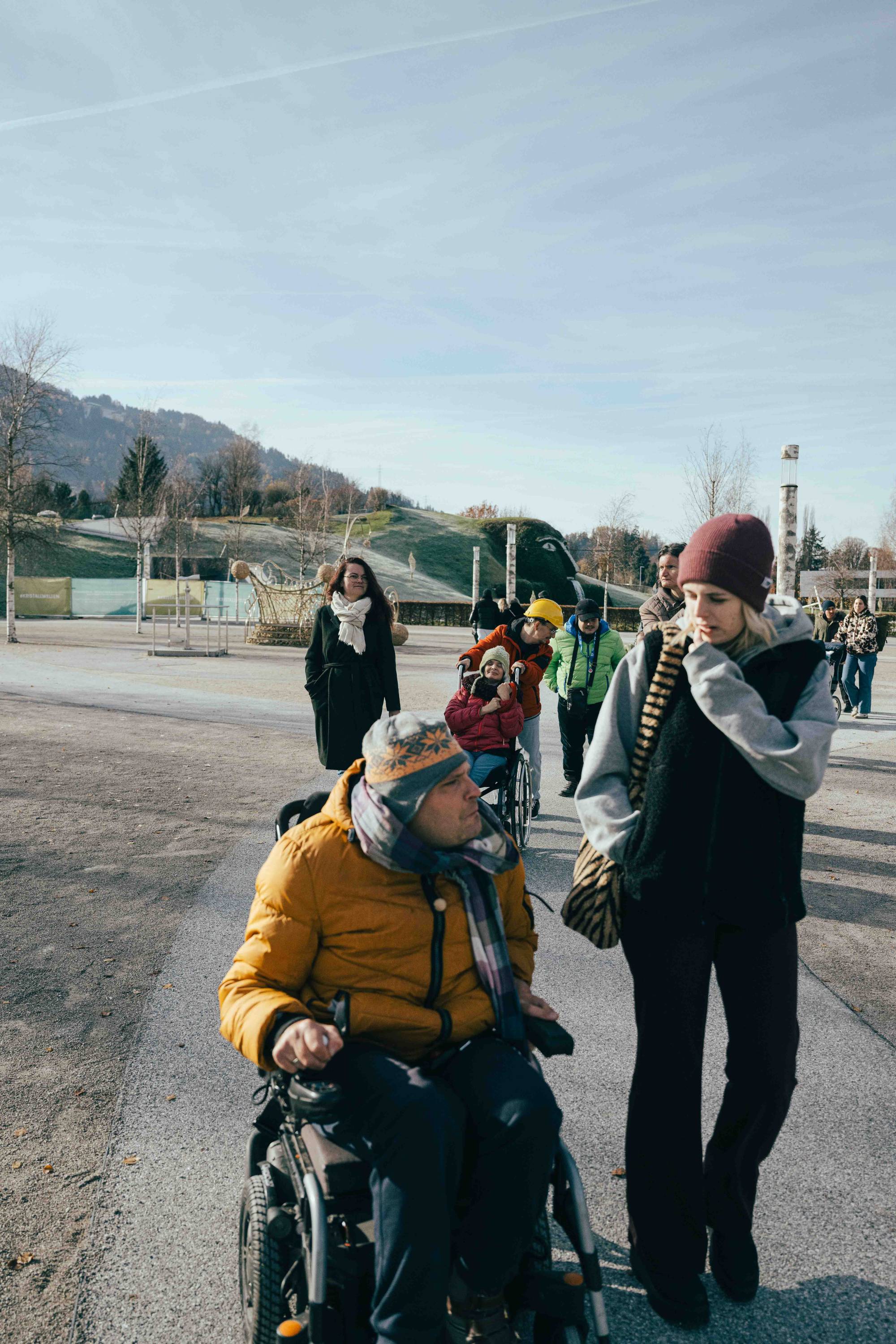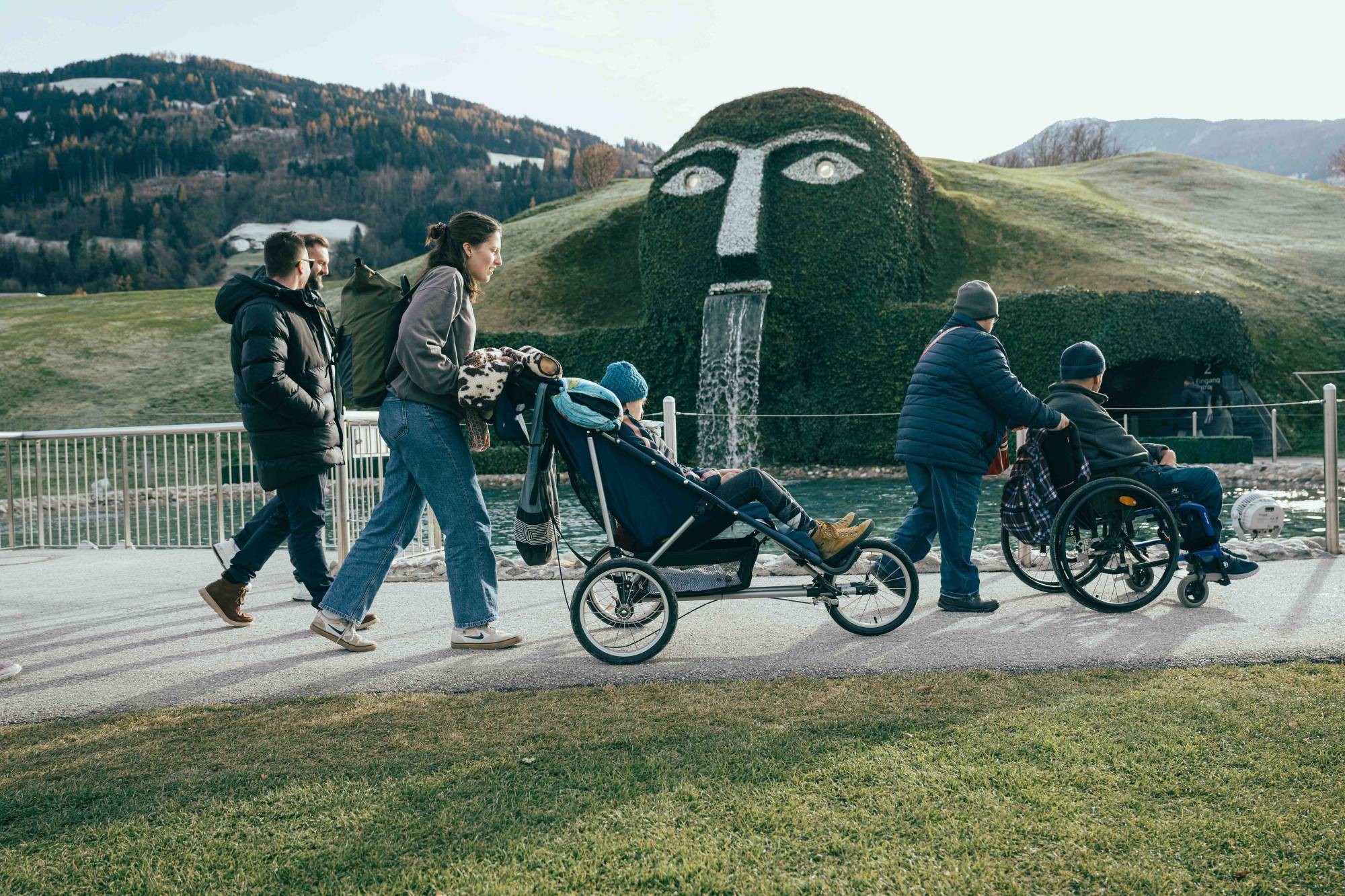 Ein beeindruckender swl-Tross hat sich am 19. November auf den Weg nach Wattens gemacht, um dort die Swarovski Kristallwelten anzusteuern. Gleich zehn Autos kamen zum Einsatz, um die 28 Klient_innen und 16 Mitarbeiter_innen der slw Wirkstätten aus Innsbruck und Axams ans funkelnde Ziel des Tagesausflugs zu bringen. Organisiert wurde der Trip vom Wiener Städtischen Versicherungsverein, der im Jahr 2011 den „Social Active Day“ ins Leben gerufen hat. Dabei stellt ein Teil der Belegschaft einen Arbeitstag für gemeinnützige Einsätze zur Verfügung. Der „Social Active Day“ findet seit seiner Gründung stets rund um den 5. Dezember statt, an dem der Internationale Tags des Ehrenamts im Kalender steht. Die freudig aufgeregte slw-Abgesandtschaft wurde letztlich von 22 Mitarbeiter_innen der Wiener Städtischen begleitet, die nicht minder gut gelaunt waren. Passend zum glitzernden Ambiente strahlten dann alle Beteiligten beim Besuch der Wunderkammern im Bauch des gräsernen Riesen um die Wette: Gemeinsam wurde aber auch gestaunt, gelacht und gequatscht, was das Zeug hielt.