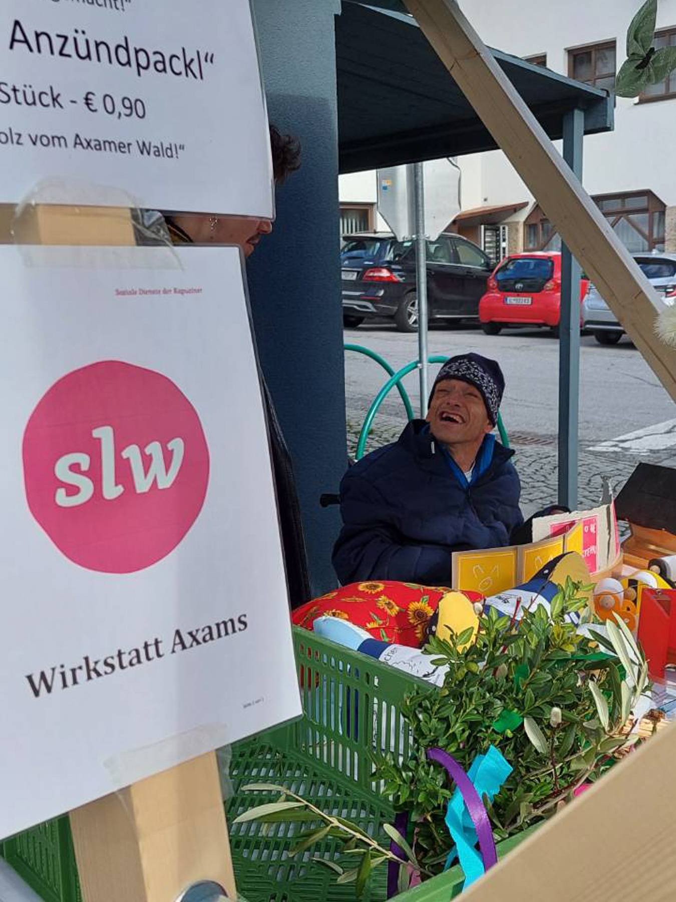 Erneut fand am 1.4. der Monatsmarkt in Axams statt. Regionale Anbieter_innen können hier Waren an einem Stand anbieten. Auch die Wirkstatt Axams war dabei und hat allerlei österliche Produkte ausgestellt.